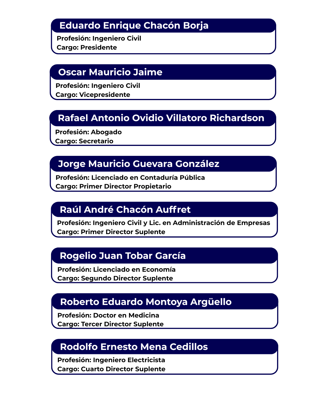 Miembros de la Junta Directiva propietarios y suplentes, para el período 2019-2026: